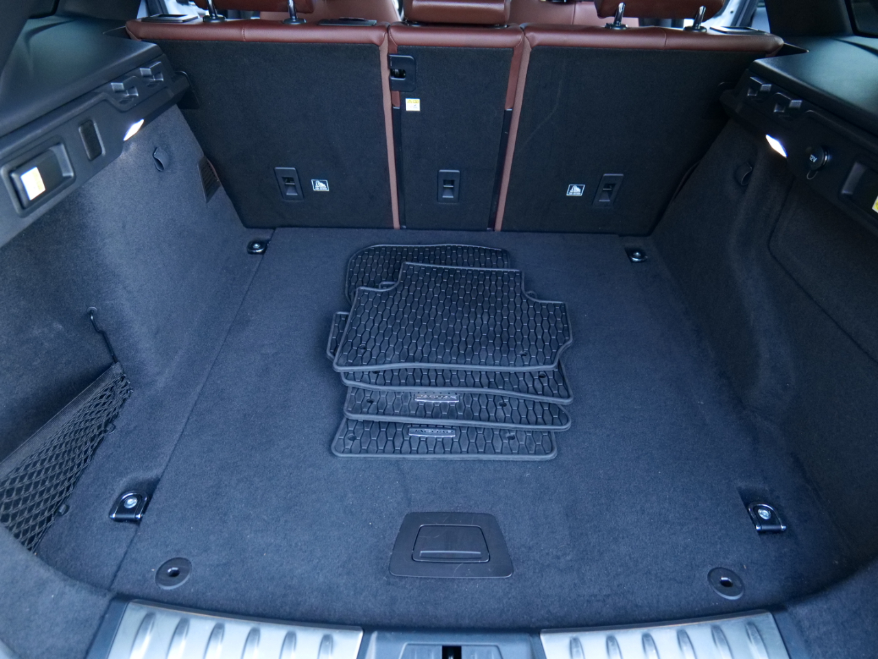 Inside, the F-Pace S features heated leather sport seats with contrast stitching, a panoramic glass roof, and premium materials throughout. The cabin design perfectly balances comfort with sport-inspired elements, including the “S” embossed headrests and driver-focused cockpit layout.
