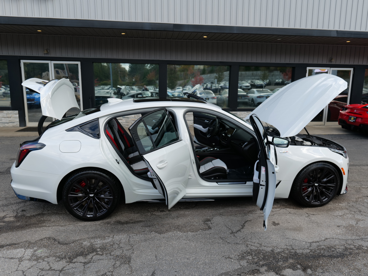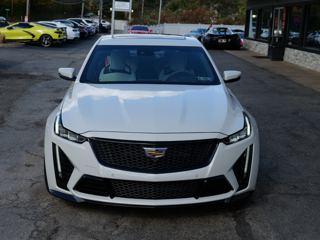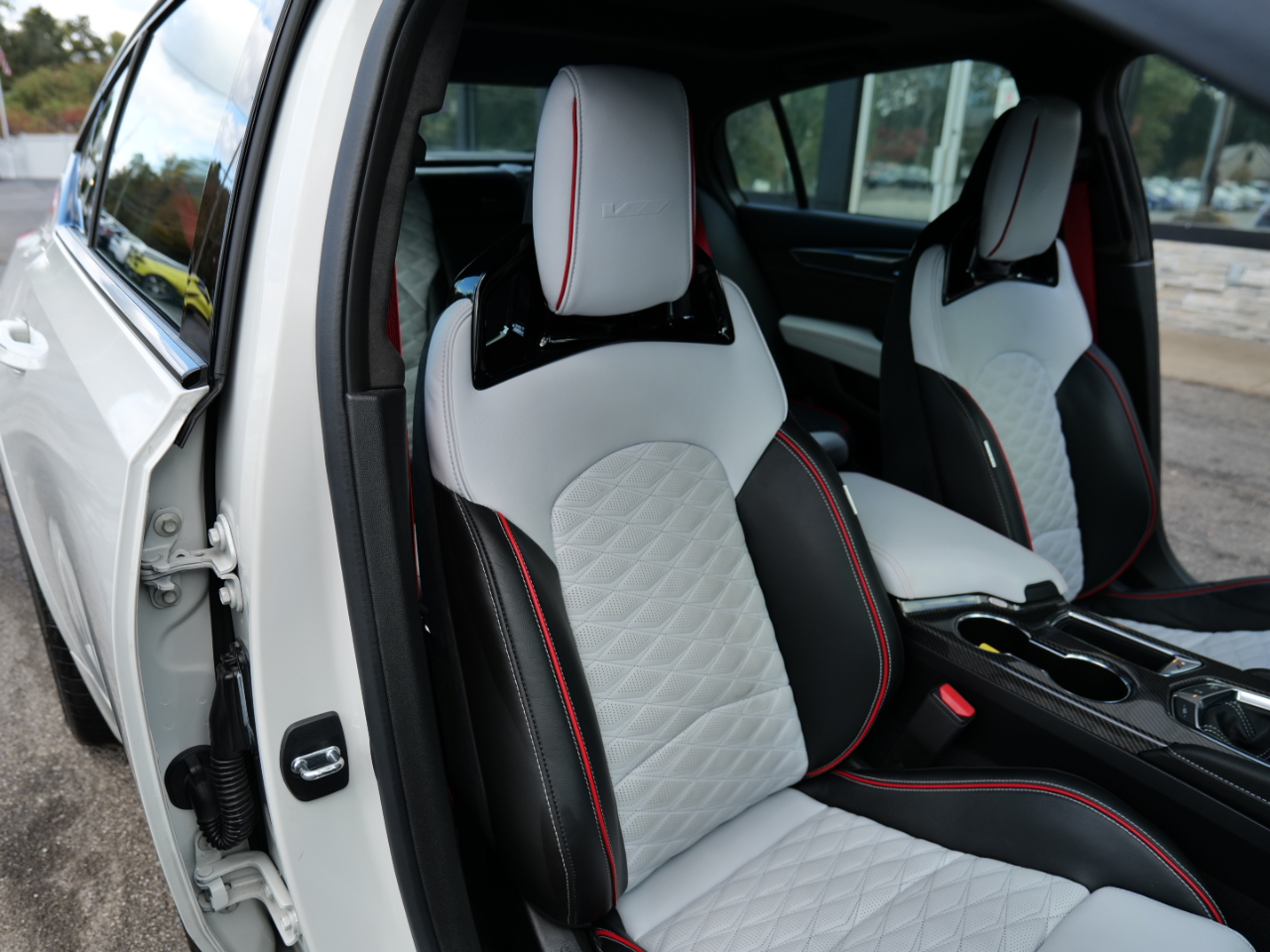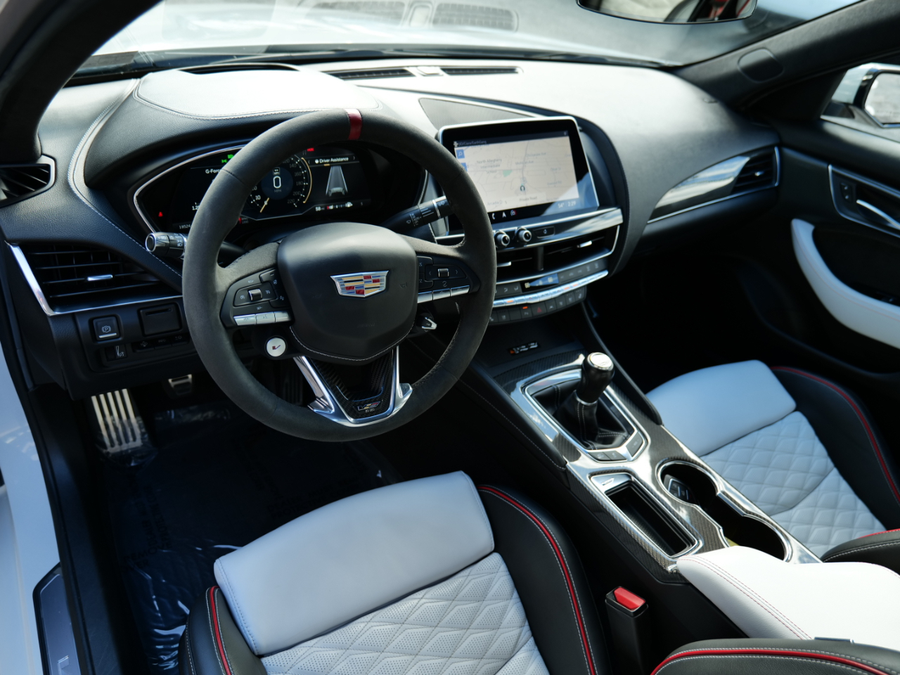 2022 CADILLAC CT5-V BLACKWING! 6 SPEED MANUAL TRANSMISSION! PERFORMANCE DATA AND VIDEO RECORDING! ULTRAVIEW SUNROOF! RIFT METALLIC WHITE ON SKY COOL GRAY AND JET BLACK WITH RED ACCENTS! CLEAN CARFAX! 6.2L SUPERCHARGED V8 ENGINE PRODUCING 668 HORSEPOWER! APPLE CAR PLAY! BLIND SPOT MONITOR! COOLED AND HEATED FRONT SEATS! HEATED STEERING WHEEL! HEADS UP DISPLAY! LANE DEPARTURE WARNING! WIRELESS PHONE CHARGING!