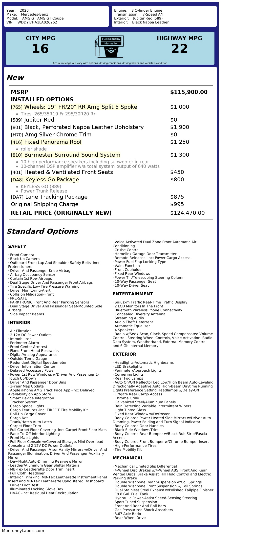 2020 Mercedes-Benz AMG GT AMG GT Coupe